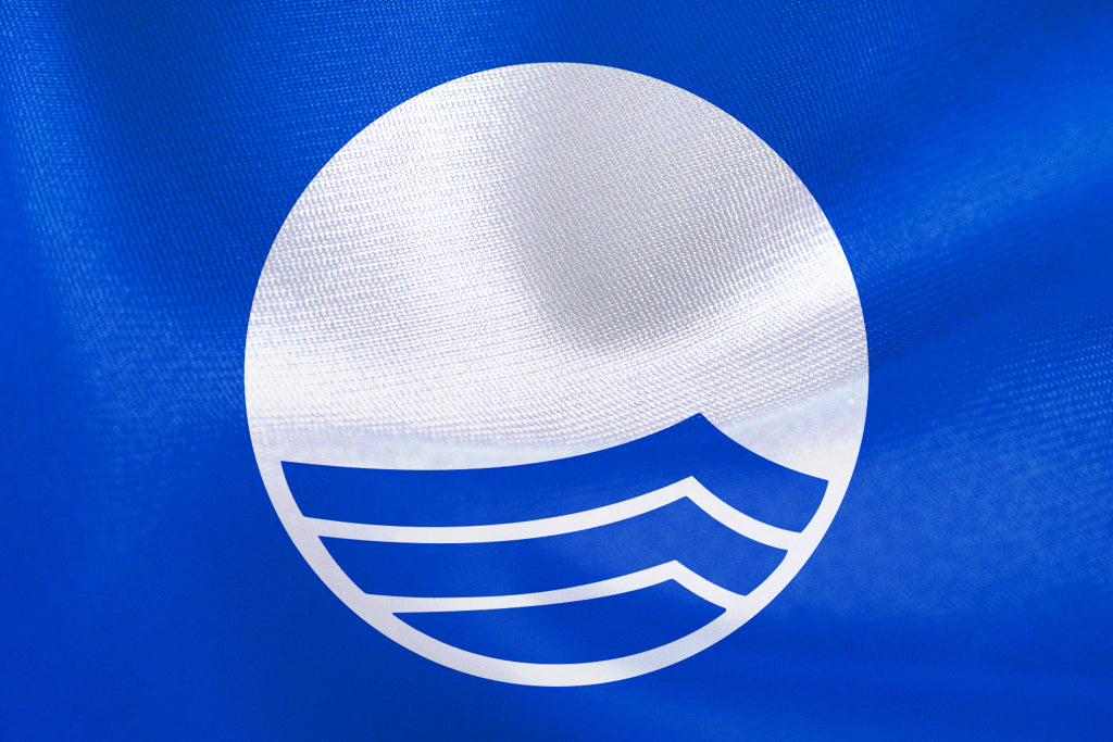 Bandiera Blu ufficiale, disponibile in diversi tessuti e finiture, idonea per esterno. Cuciture doppie, fettuccia di rinforzo lato asta dove prevista, misure standard o personalizzate su richiesta.