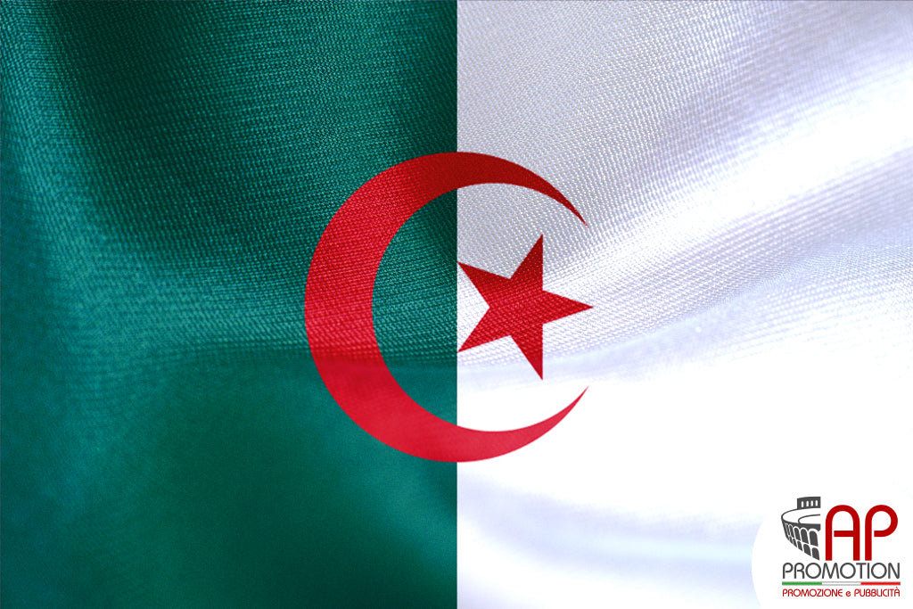 Bandiera nazionale dell'Algeria, stampata su tessuto 100% poliestere: materiale apposito per l'utilizzo in esterni, ma allo stesso tempo morbido ed esteticamente gradevole per l'utilizzo in ambienti interni. Disponibile in misure standard o personalizzate su richiesta.