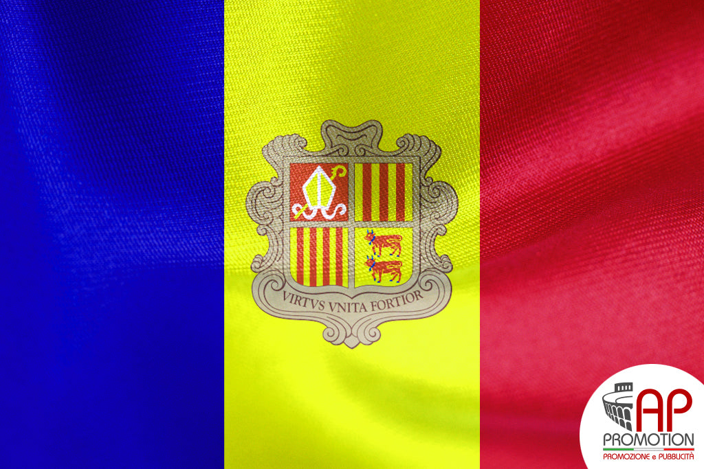 Bandiera nazionale dell'Andorra, stampata su tessuto 100% poliestere: materiale apposito per l'utilizzo in esterni, ma allo stesso tempo morbido ed esteticamente gradevole per l'utilizzo in ambienti interni. Disponibile in misure standard o personalizzate su richiesta.