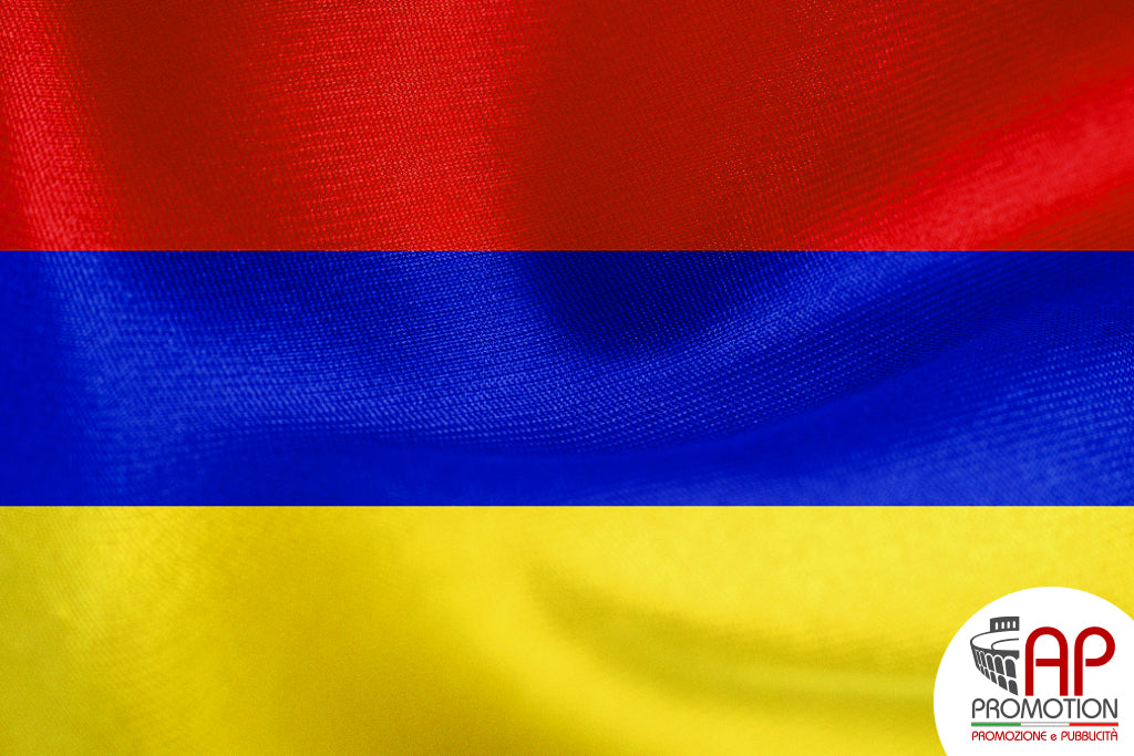 Bandiera nazionale dell'Armenia, stampata su tessuto 100% poliestere: materiale apposito per l'utilizzo in esterni, ma allo stesso tempo morbido ed esteticamente gradevole per l'utilizzo in ambienti interni. Disponibile in misure standard o personalizzate su richiesta.