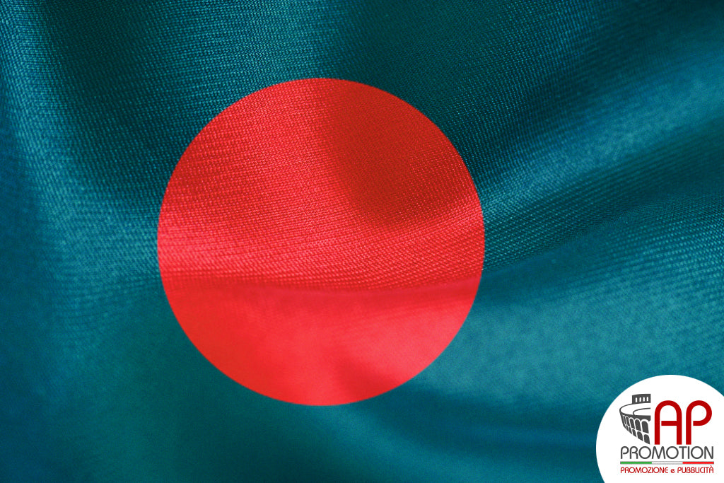 Bandiera nazionale del Bangladesh, stampata su tessuto 100% poliestere: materiale apposito per l'utilizzo in esterni, ma allo stesso tempo morbido ed esteticamente gradevole per l'utilizzo in ambienti interni. Disponibile in misure standard o personalizzate su richiesta.