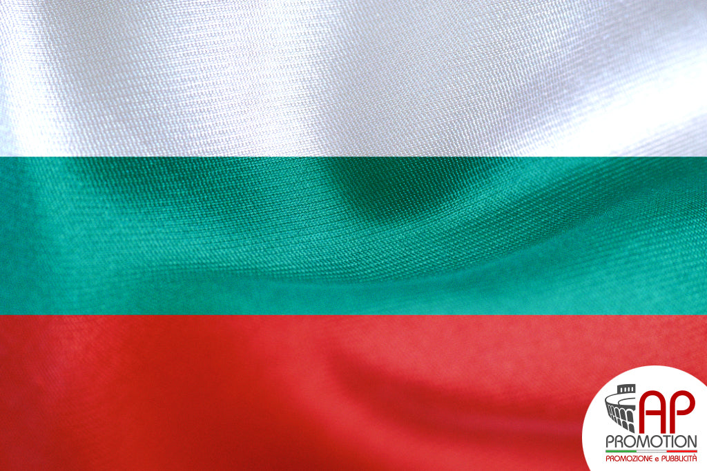 Bandiera nazionale dela Bulgaria, stampata su tessuto 100% poliestere: materiale apposito per l'utilizzo in esterni, ma allo stesso tempo morbido ed esteticamente gradevole per l'utilizzo in ambienti interni. Disponibile in misure standard o personalizzate su richiesta.