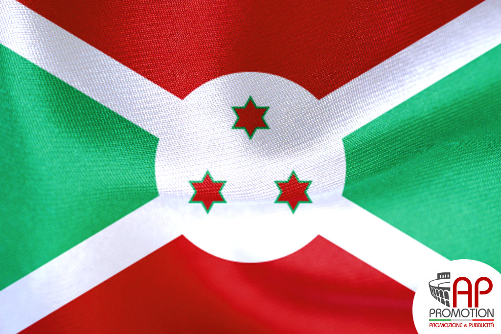 Bandiera nazionale del Burundi, stampata su tessuto 100% poliestere: materiale apposito per l'utilizzo in esterni, ma allo stesso tempo morbido ed esteticamente gradevole per l'utilizzo in ambienti interni. Disponibile in misure standard o personalizzate su richiesta.