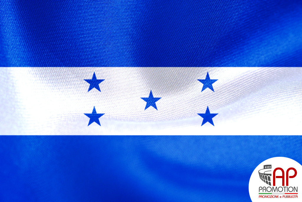 Bandiera nazionale di Honduras, stampata su tessuto 100% poliestere: materiale apposito per l'utilizzo in esterni, ma allo stesso tempo morbido ed esteticamente gradevole per l'utilizzo in ambienti interni. Disponibile in misure standard o personalizzate su richiesta.