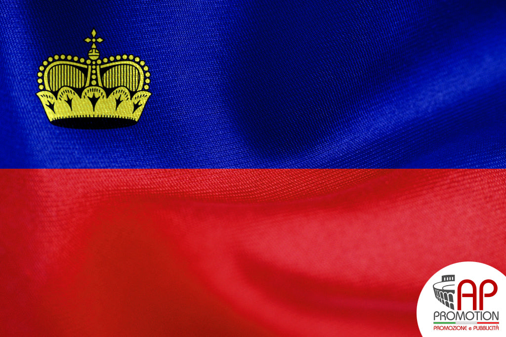 Bandiera del Liechtenstein disponibile in diversi tessuti e finiture, idonea per esterno. Cuciture doppie, fettuccia di rinforzo lato asta dove prevista, misure standard o personalizzate su richiesta.