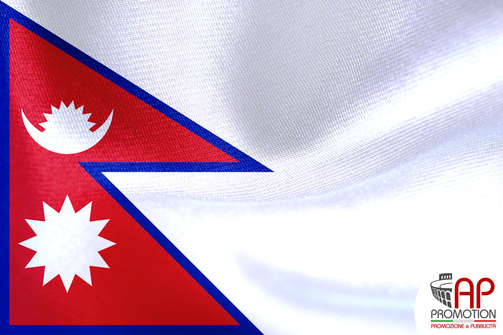 Bandiera nazionale del Nepal, stampata su tessuto 100% poliestere: materiale apposito per l'utilizzo in esterni, ma allo stesso tempo morbido ed esteticamente gradevole per l'utilizzo in ambienti interni. Disponibile in misure standard o personalizzate su richiesta.