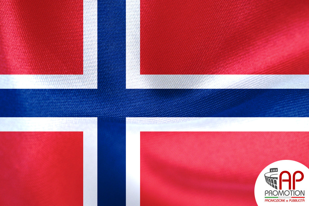 Bandiera nazionale della Norvegia, stampata su tessuto 100% poliestere: materiale apposito per l'utilizzo in esterni, ma allo stesso tempo morbido ed esteticamente gradevole per l'utilizzo in ambienti interni. Disponibile in misure standard o personalizzate su richiesta.