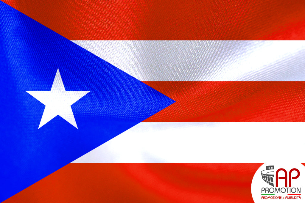 Bandiera Portoricana disponibile in diversi tessuti e finiture, idonea per esterno. Cuciture doppie, fettuccia di rinforzo lato asta dove prevista, misure standard o personalizzate su richiesta.