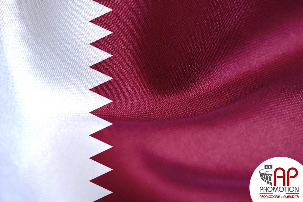 Bandiera nazionale del Qatar, stampata su tessuto 100% poliestere: materiale apposito per l'utilizzo in esterni, ma allo stesso tempo morbido ed esteticamente gradevole per l'utilizzo in ambienti interni. Disponibile in misure standard o personalizzate su richiesta.