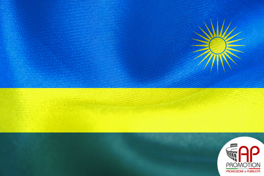 Bandiera nazionale della Ruanda, stampata su tessuto 100% poliestere: materiale apposito per l'utilizzo in esterni, ma allo stesso tempo morbido ed esteticamente gradevole per l'utilizzo in ambienti interni. Disponibile in misure standard o personalizzate su richiesta.
