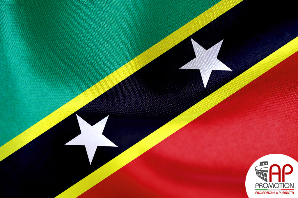 Bandiera nazionale di Saint Kitts e Nevis, stampata su tessuto 100% poliestere: materiale apposito per l'utilizzo in esterni, ma allo stesso tempo morbido ed esteticamente gradevole per l'utilizzo in ambienti interni. Disponibile in misure standard o personalizzate su richiesta.