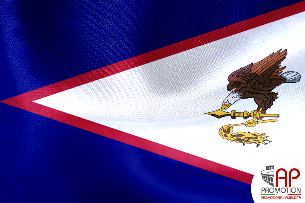 Bandiera delle Samoa Americane disponibile in diversi tessuti e finiture, idonea per esterno. Cuciture doppie, fettuccia di rinforzo lato asta dove prevista, misure standard o personalizzate su richiesta.