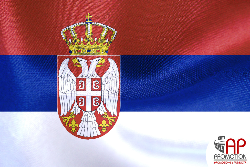 Bandiera nazionale della Serbia, stampata su tessuto 100% poliestere: materiale apposito per l'utilizzo in esterni, ma allo stesso tempo morbido ed esteticamente gradevole per l'utilizzo in ambienti interni. Disponibile in misure standard o personalizzate su richiesta.