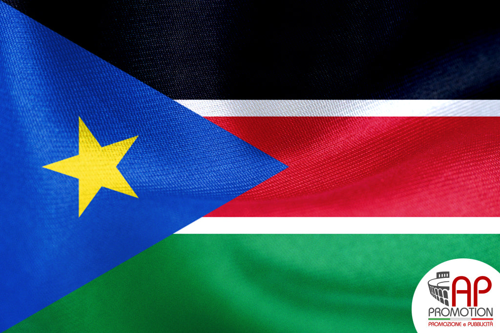 Bandiera nazionale del Sudan del Sud, stampata su tessuto 100% poliestere: materiale apposito per l'utilizzo in esterni, ma allo stesso tempo morbido ed esteticamente gradevole per l'utilizzo in ambienti interni. Disponibile in misure standard o personalizzate su richiesta.