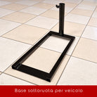 - Base sottoruota, studiata per essere utilizzata con veicolo ma idonea da zavorrare anche con fioriere o altri pesi idonei. Realizzata in ferro verniciato.