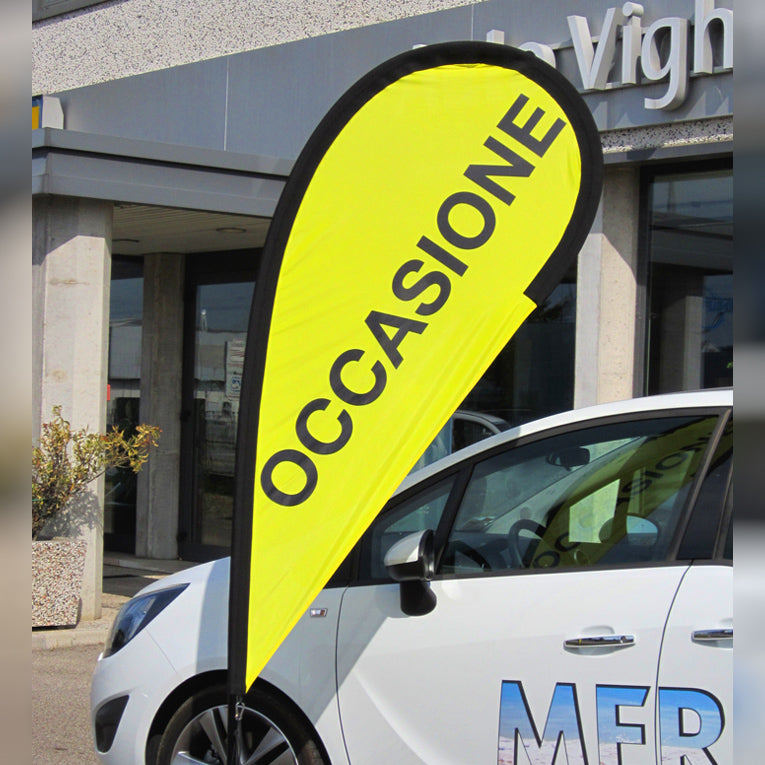 Le bandiere a goccia personalizzate si distinguono per la loro forma sinuosa ed elegante, capace di attirare l'attenzione in contesti sia indoor che outdoor. La particolare struttura a goccia conferisce movimento e dinamismo alla comunicazione visiva, rendendo queste bandiere promozionali particolarmente efficaci per eventi, fiere e spazi espositivi.