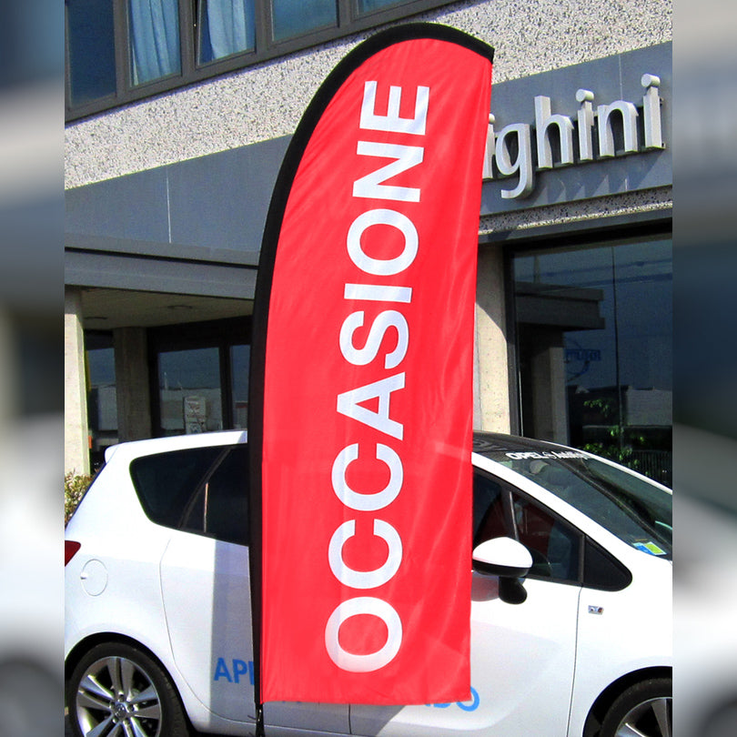 Con il loro profilo elegante e ondulato, le bandiere a piuma aggiungono un tocco di dinamismo alla tua comunicazione visiva, perfette per eventi esclusivi e presentazioni di prodotto.