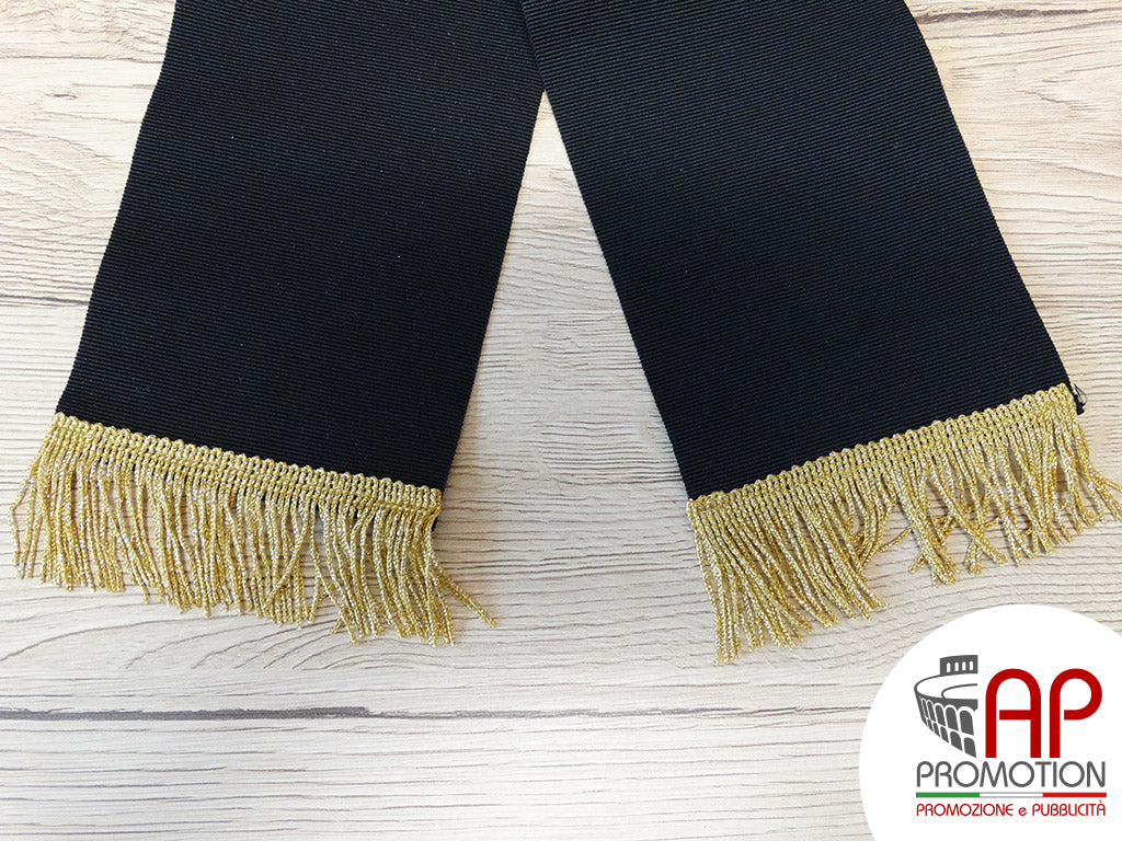 Il fiocco misura 35 cm in lunghezza ed è impreziosito da una frangia decorativa, disponibile in due varianti: oro o argento, per adattarsi alle diverse esigenze di stile.