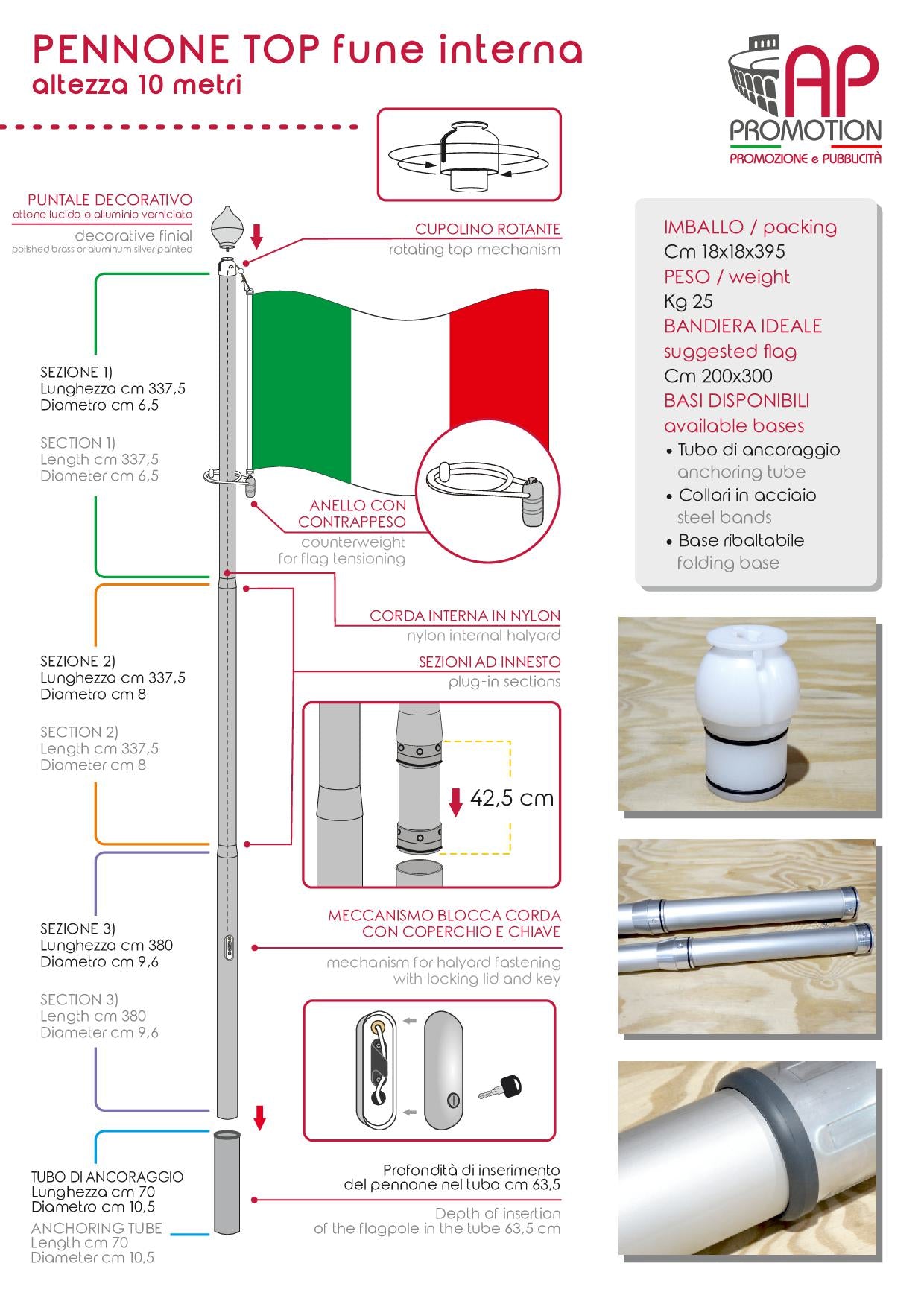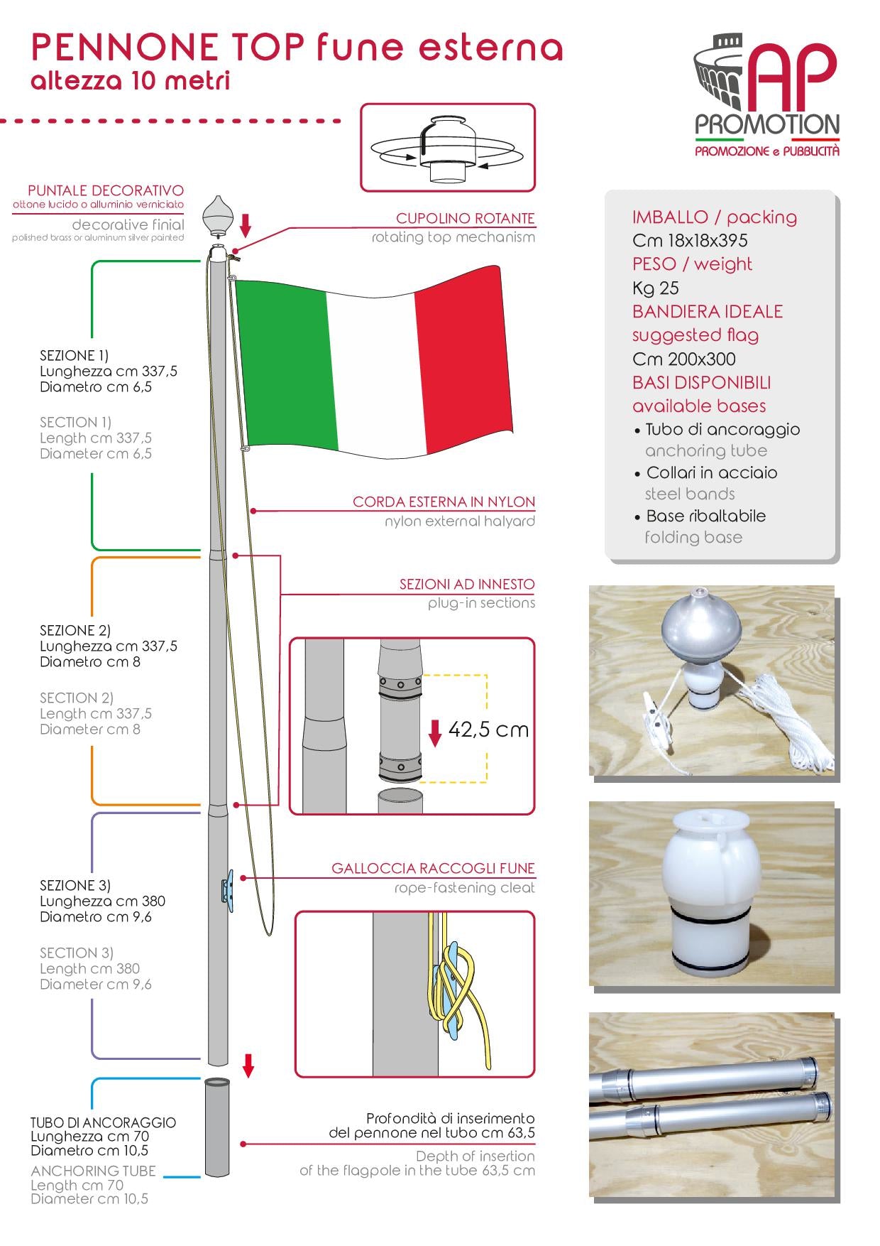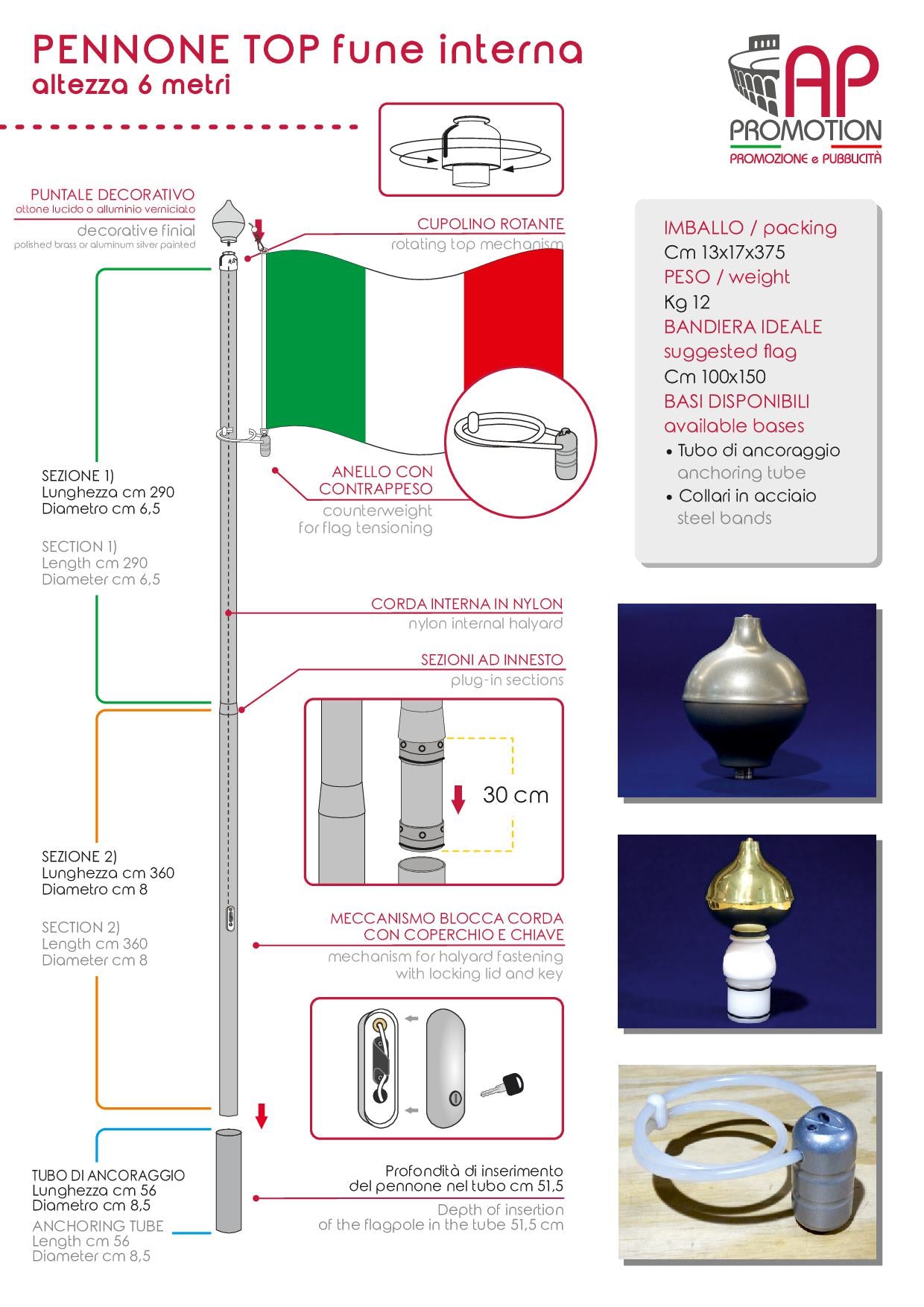 Tutti i nostri pennoni sono realizzati utilizzando alluminio di grado aeronautico e componenti in acciaio inox di alta qualità, materiali che garantiscono: