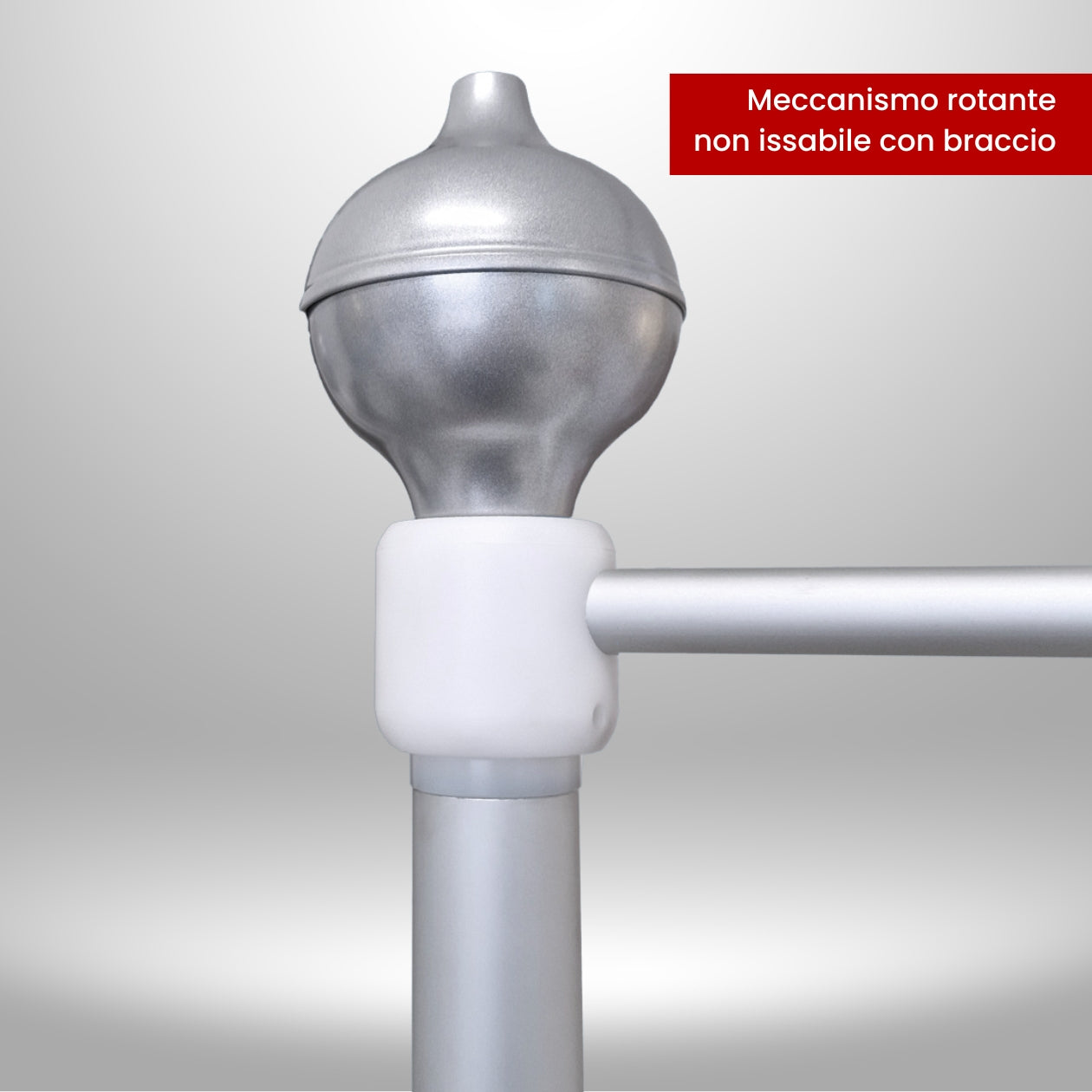 Il Pennone Comfort rappresenta la soluzione più lussuosa e funzionale della nostra gamma, progettato per chi cerca il massimo della comodità nella gestione quotidiana. La caratteristica distintiva è la pratica manovella che semplifica notevolmente le operazioni di issaggio e ammainamento della bandiera, eliminando lo sforzo fisico. Disponibile in due varianti:
