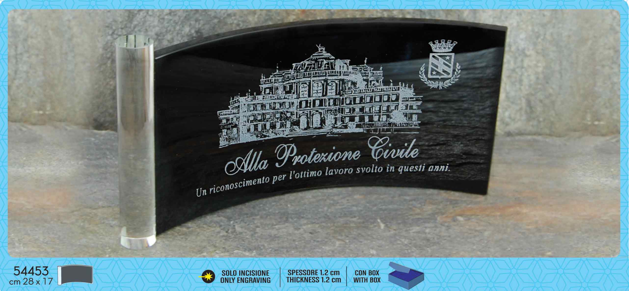 - incisione laser: elegante, raffinata e indelebile, è la metodologia di personalizzazione preferita per le premiazioni in cristallo.