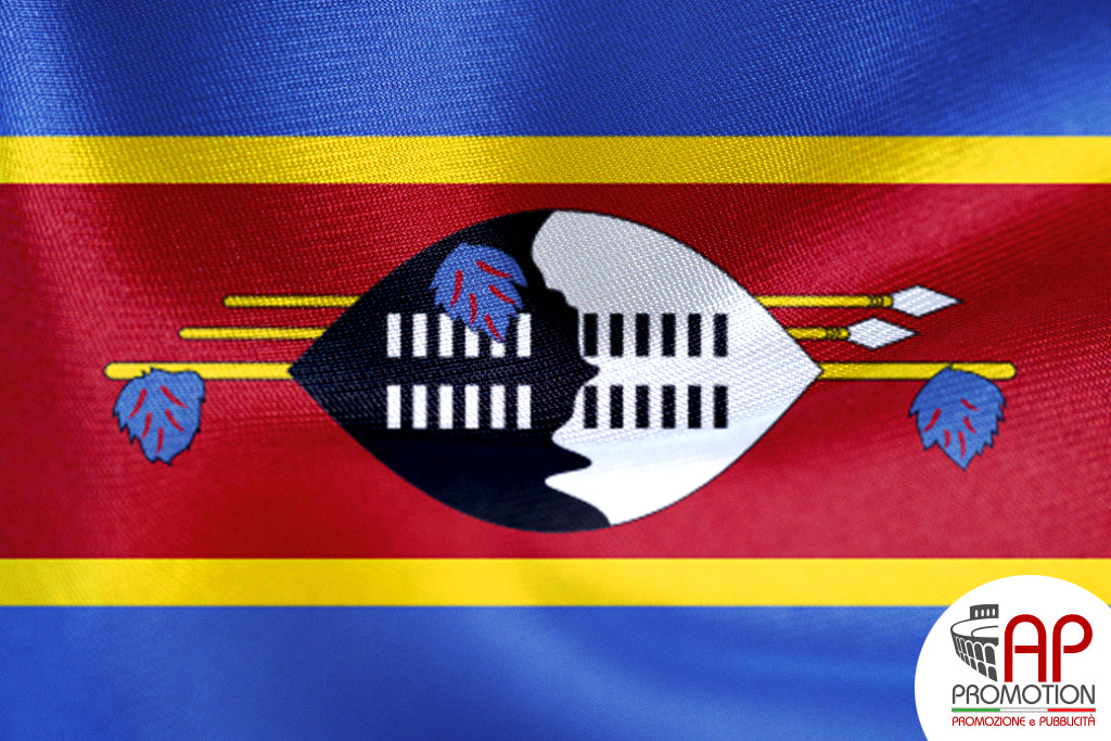 Bandiera nazionale dello Swaziland, stampata su tessuto 100% poliestere: materiale apposito per l'utilizzo in esterni, ma allo stesso tempo morbido ed esteticamente gradevole per l'utilizzo in ambienti interni. Disponibile in misure standard o personalizzate su richiesta.