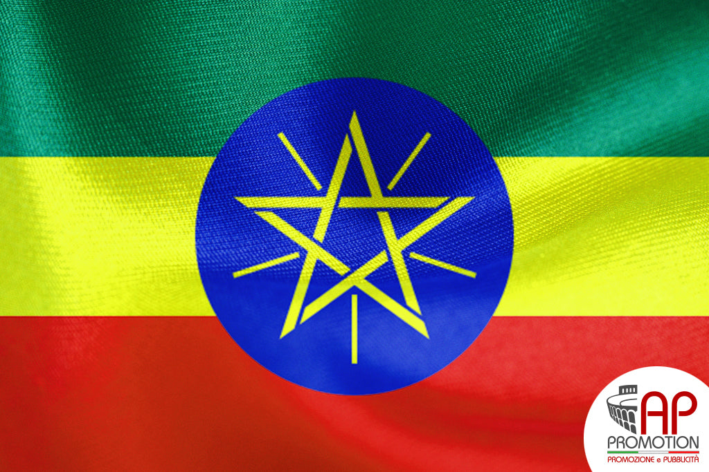 Bandiera nazionale dell'Etiopia, stampata su tessuto 100% poliestere: materiale apposito per l'utilizzo in esterni, ma allo stesso tempo morbido ed esteticamente gradevole per l'utilizzo in ambienti interni. Disponibile in misure standard o personalizzate su richiesta.