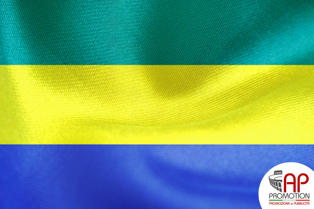 Bandiera nazionale del Gabon, stampata su tessuto 100% poliestere: materiale apposito per l'utilizzo in esterni, ma allo stesso tempo morbido ed esteticamente gradevole per l'utilizzo in ambienti interni. Disponibile in misure standard o personalizzate su richiesta.