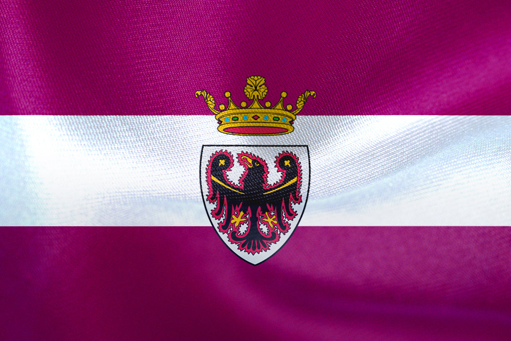 Bandiera della Provincia Autonoma di Trento disponibile in diversi tessuti e finiture, idonea per esterno. Cuciture doppie, fettuccia di rinforzo lato asta dove prevista, misure standard o personalizzate su richiesta.